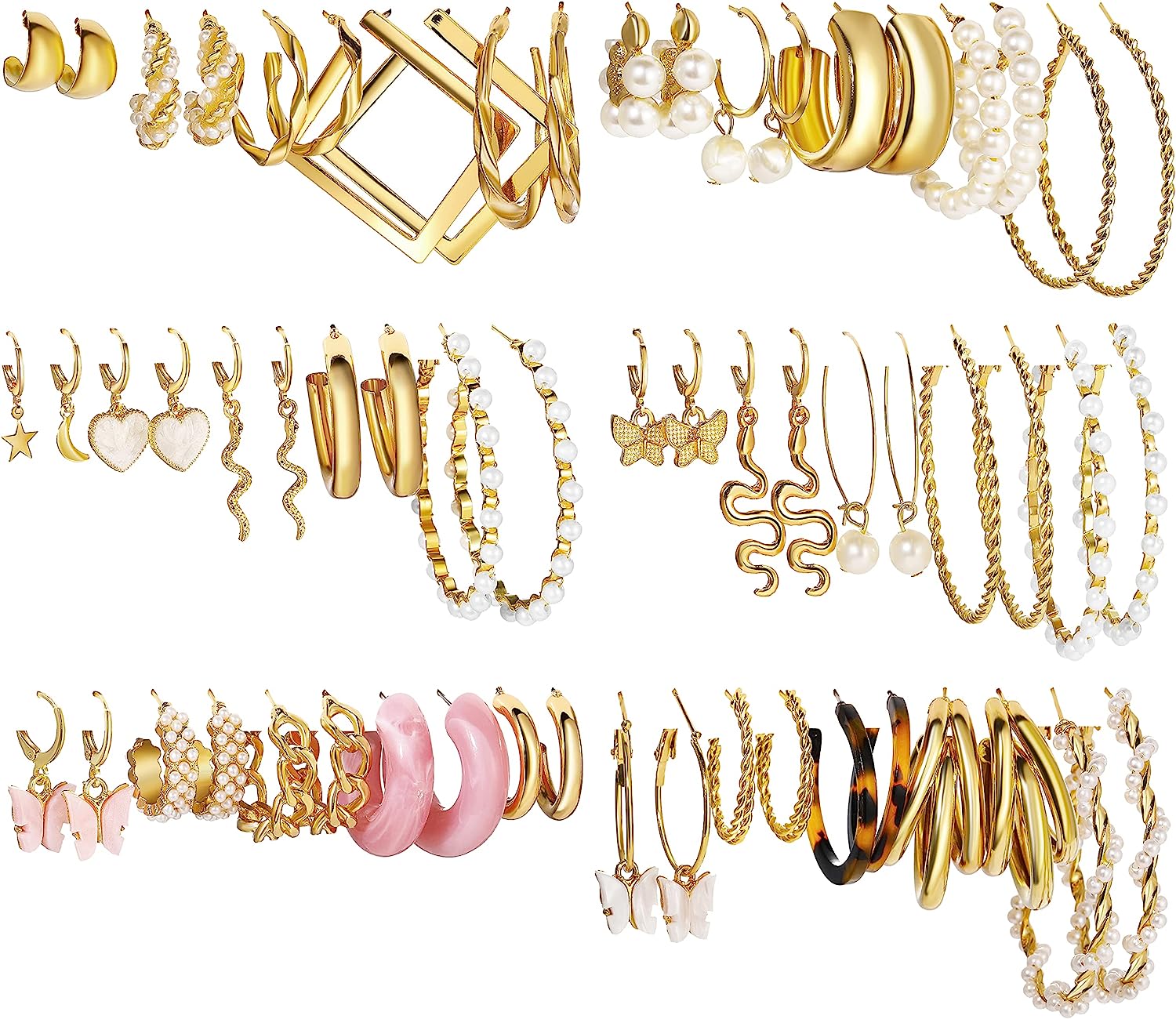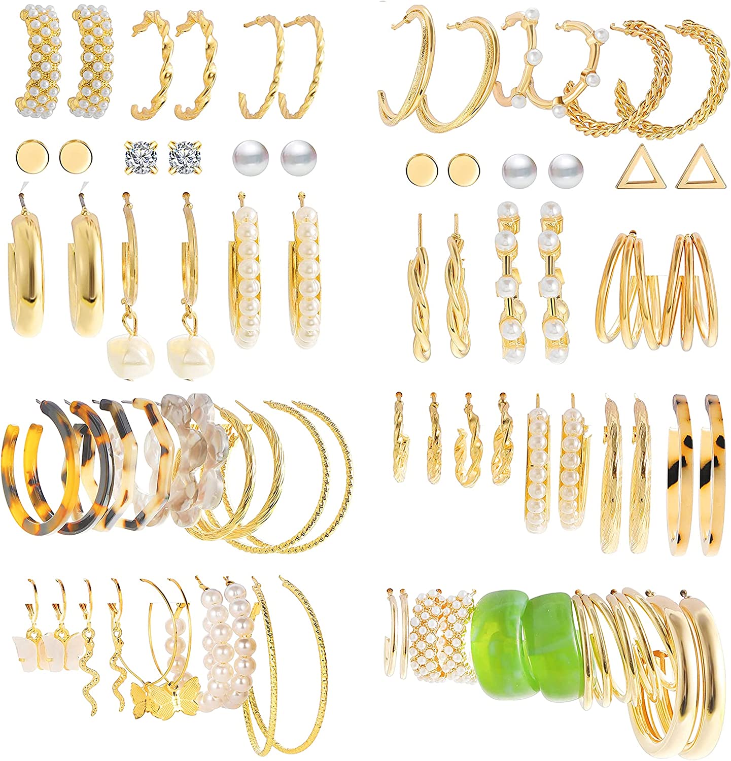 • ?OUR GOLD HOOP EARRINGS WILL NEVER BE OUT of STYLE: This value pack comes with 36 pairs of different earrings, adding a beautiful comprehensive set to your earring collection.Rich in patterns and colors, you will always have a perfect pair that goes with your outfit on various occasions.
