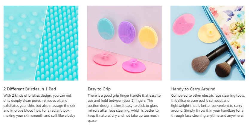 【Handy & Ideal Gift】Here comes with 2 silicone facial cleansing brush in 2 different colors. They are very handy so you can take them for traveling to use one for all creams and moisturizers and use the other one for cleansers. Gift this functional little stuff for your love, your mom and your girl.