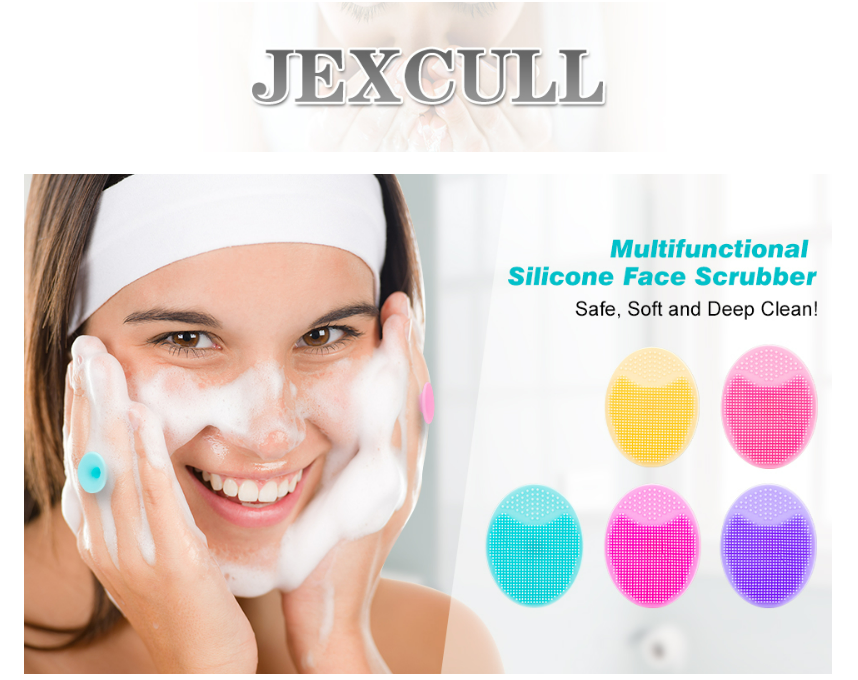 4 Pack Face Scrubber,JEXCULL Soft Silicone Facial Cleansing Brush Face Exfoliator Blackhead Acne Pore Pad Cradle Cap Face Wash Brush for Deep Cleaning Skin Care(6822)