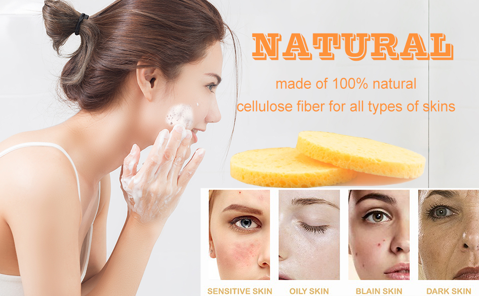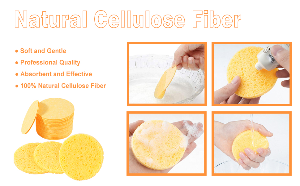 50-count little round cellulose facial sponges. 2.8" dia. x 0.32" thick after hydrated