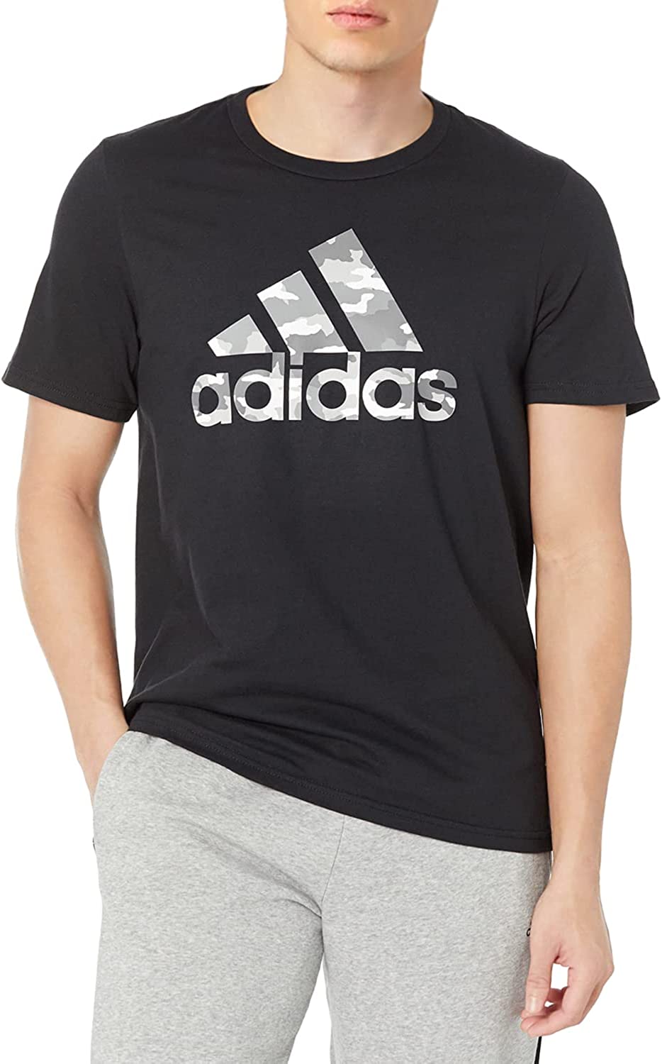 Pro tip: Start your day in this men's t-shirt, and you can't go wrong. Soft cotton fabric keeps you feeling good through coffee dates, midday walks and evenings out with friends. A big adidas Badge of Sport front and center flashes your inner drive and power.