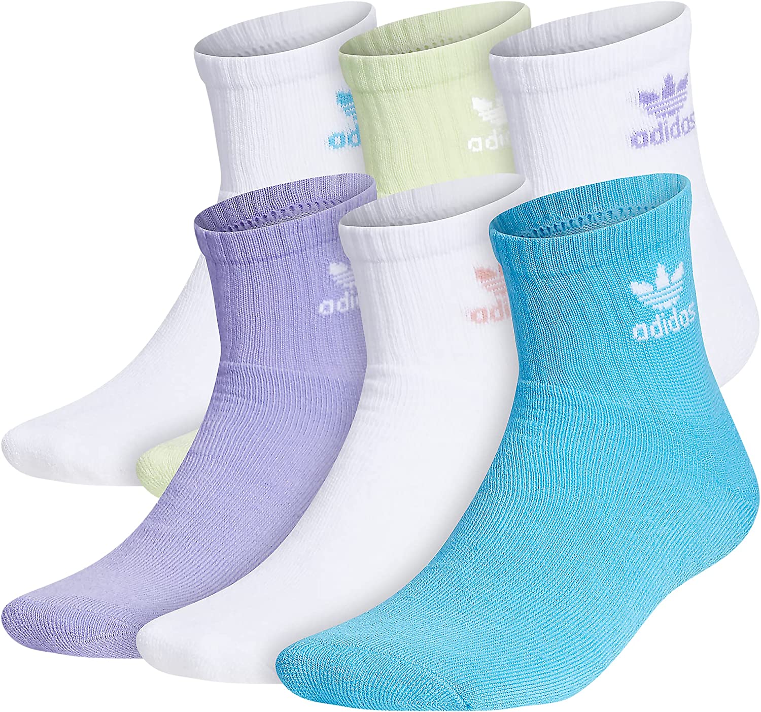 The trefoil quarter is all about clean, comfortable style. cushioning in the foot gives you the comfort and durability for everyday wear, arch compression will keep the sock snug and secure on your foot, and moisture-wicking will keep your feet dry from sweat.