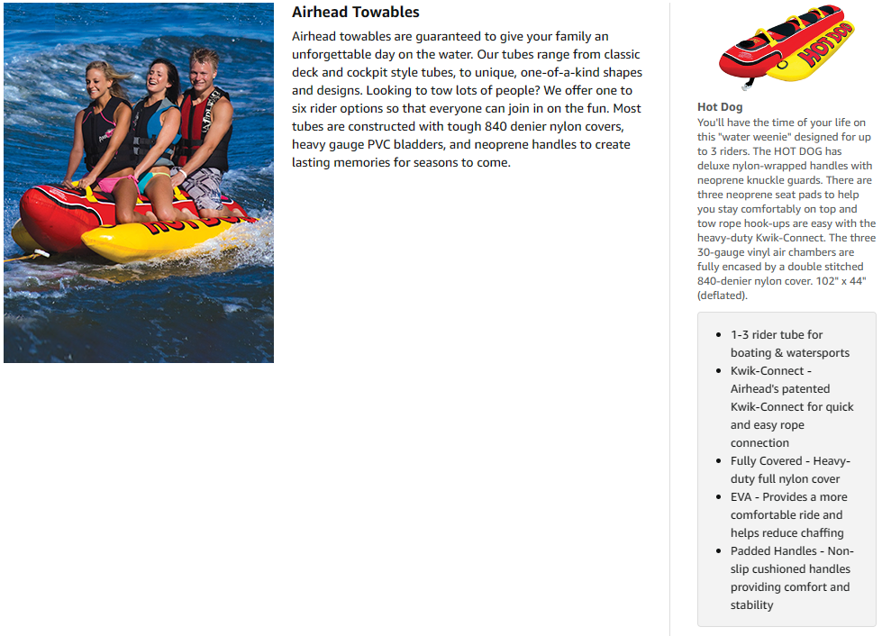| Model Name | Hot Dog 3 Person Towable Tube |
