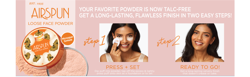 YOUR FAVORITE POWDER IS NOW TALC-FREE. LIGHTWEIGHT FORMULA: Exclusive microspun formula established in 1935 for ultra-lightweight, cloud-like feel. FLAWLESS FINISH: Mattifying powder helps smooth & soften the appearance of skin. LONG-LASTING: Can be used as a foundation or to set makeup for a long-lasting velvety finish. Established in 1935, this ultra-smooth powder hides tiny lines, wrinkles and blemishes and gives a new softness to your skin for a flawless finish. Our exclusive microspun formula where loose powder particles are spun and swirled until they reach cloudlike softness can be used to set makeup or as a foundation. Kind-to-skin formula that won't clog pores, the Airspun Loose Face Powder will be your everyday go-to.