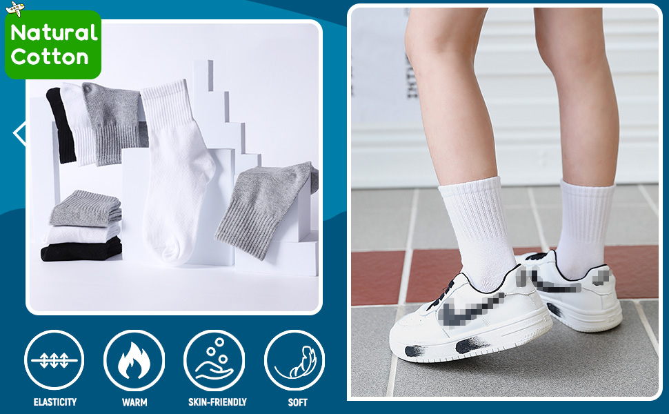 FIT MANY OCCASIONS- Multi purpose and practical, the socks can be worn both indoor and outdoor, they are suitable for many occasions, such as school commuting, playing sports, going camping, athletic, traveling and more. These crew socks are perfect for everyday wear and can be worn with a variety of outfits. Whether kids sporting sneakers, shoes, or boots, socks will work perfectly for a casual and sporty look. Matches with most outfits.