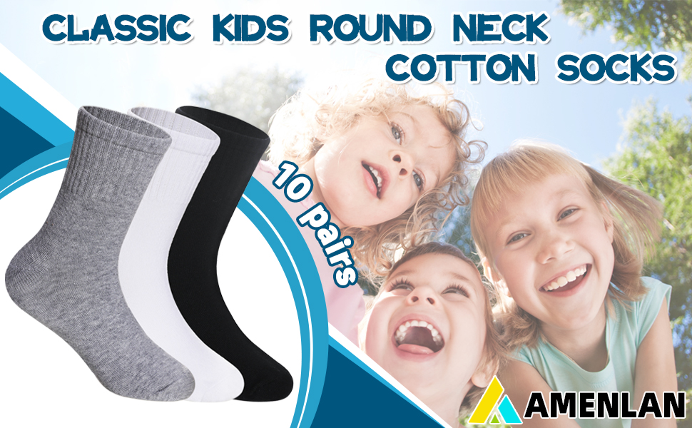 AMENLAN Kids Classics Crew Socks 10 Pairs Child Boy Girls Athletic Cotton Basic School Uniform Breathable Casual Sports Socks(5349)