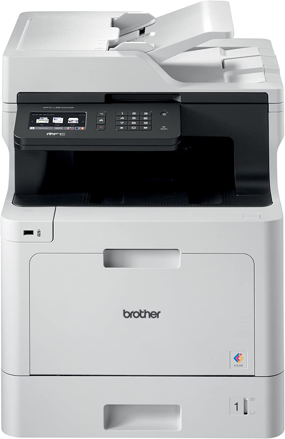 The Brother MFC-L8610CDW Color Laser All-in-One is a great choice for offices and small workgroups that need cost-efficient printing, easy scanning, secure document handling, and reliable, business-quality output. This color laser printer, copier, scanner, and fax machine was designed to enhance office productivity by delivering print speeds up to 33ppm(1) and scan speeds up to 29ipm. (6) The built-in scanning feature allows users to scan to popular destinations including e-mail, SharePoint, and business cloud services. (4) Connecting to the Brother MFC-L8610CDW is simple and convenient. Built-in wireless and Gigabit Ethernet network interfaces allow users to share the all-in-one. Plus, users can wirelessly print from a wide variety of mobile devices over a wireless network. An adjustable 3. 7″ Touchscreen display offers easy menu navigation and printing from and scanning to popular business Cloud services such as Google Drive, Dropbox, OneDrive, and more. (2) This Brother all-in-one offers a 50-page capacity automatic document feeder for copying, scanning and faxing multi-page documents. The adjustable 250-sheet capacity paper tray and 50-sheet capacity multipurpose tray make printing and copying simple. This office all-in-one can be upgraded to a 1, 050-sheet total capacity with optional trays. The MFC-L8610CDW is also Dash Replenishment enabled. This system allows the all-in-one to measure the toner level of your Genuine Brother Replacement Cartridges and automatically order replacements. This ensures you never run out of toner so that you can maintain the office efficiency you expect and require. (1)Based on one-sided printing. Change from default setting required. (2)Requires an Internet connection and an account with desired service. (3)Approximate cartridge yield in accordance with ISO/IEC 19798 (letter/A4). (4)Requires connection to a wireless network. (5)The mobile device must have NFC capability and run Android OS 4. 4 or later. (6)Scan speed measured with all advanced features turned off using LTR size test documents at 200dpi.