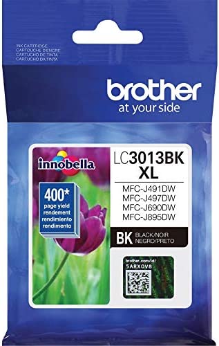 Brother Genuine LC3013BK Single Pack High-yield Black Ink Cartridges deliver consistent, professional print quality with up to 400-page yield(1). Brother Genuine ink is intelligently engineered to work seamlessly with your Brother inkjet printer to consistently produce sharp, black prints that withstand the test of time. Use only Brother Genuine ink cartridges for reliable results. Brother offers an environmentally responsible way for customers to dispose of Brother Genuine cartridges at end of life. Visit manufacturer’s website for more information. Brother Genuine LC3013BK is for use with Brother Work Smart Series compact, affordable inkjet all-in-one printers: MFCJ491DW, MFCJ497DW, MFCJ690DW, MFCJ895DW. (1)Approximate page yield in accordance with ISO/IEC 24711.