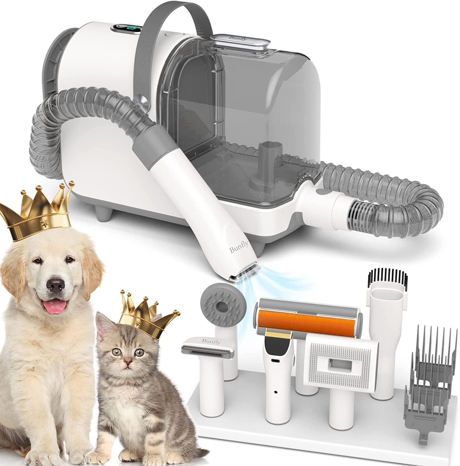 Bunfly Pet Clipper Grooming Kit & Vacuum Suction 99% Pet Hair, 6 Grooming Tools, 2.5L Capacity Easy Empty Dustbin for Pet Hair, Home Cleaning-Brown(2651)