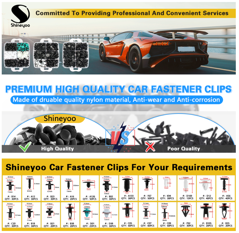 HIGH QUALITY, Most of our car retainer push clips kit are made of high quality nylon. Rugged, shock resistant, resistant to cracking or cracking.