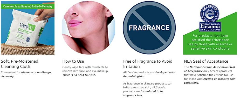 Developed with dermatologists, CeraVe Makeup Removing Cleanser Cloths cleanse and remove dirt, oil, face & eye makeup (including long-wear facial makeup & waterproof mascara) and hydrate skin. This gentle yet effective makeup wipe is a travel-friendly, easy-to-use, rinse-free towelette that can be used anytime and anywhere. The makeup wipe is convenient for at-home and on-the-go cleansing.