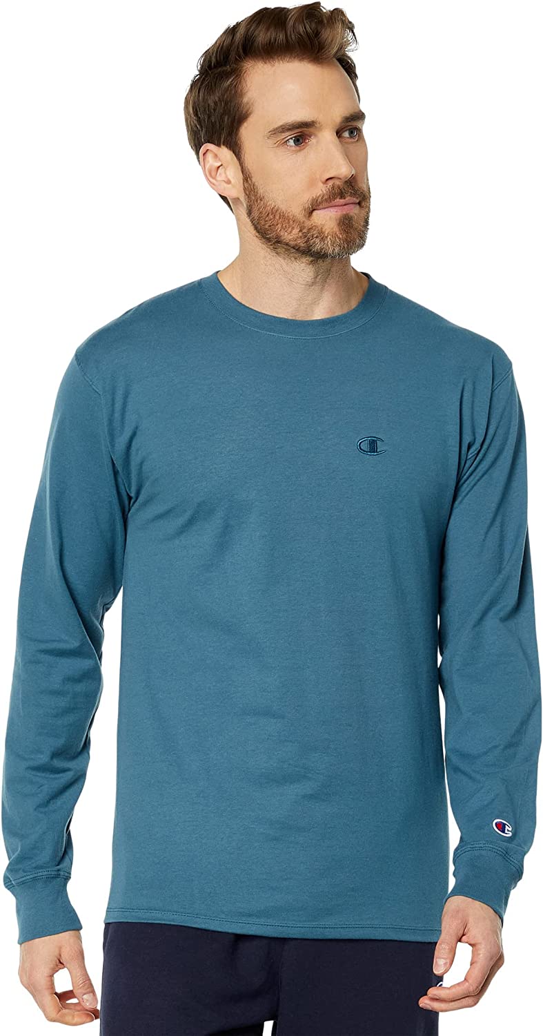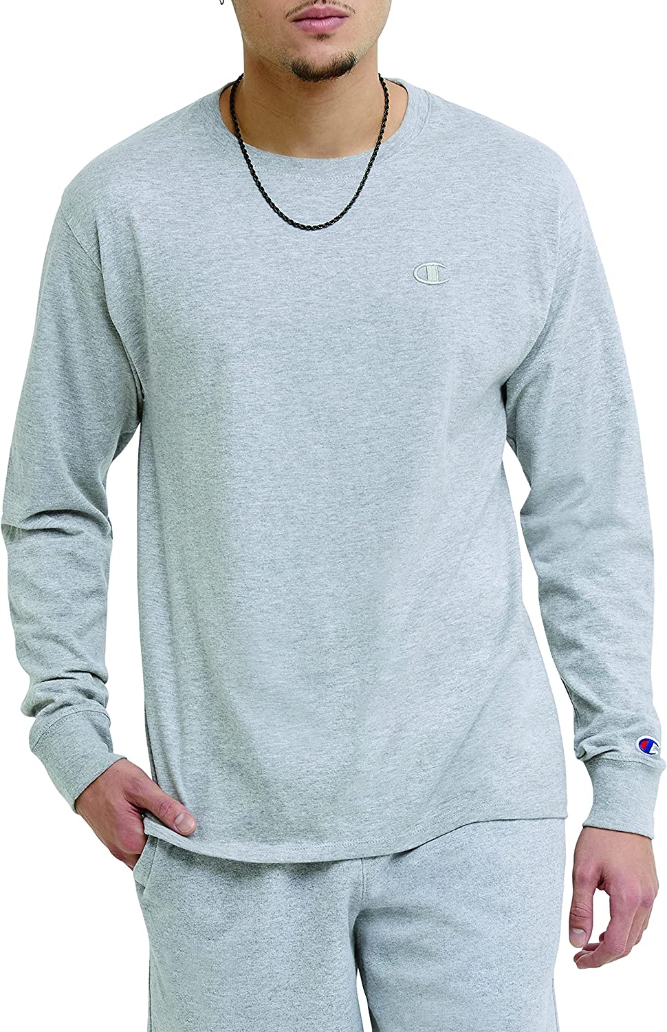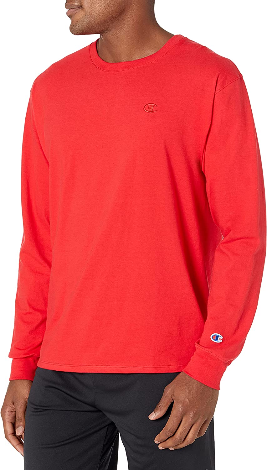 FEEL-GOOD SPORTY STYLE FOR THE CITY. Whether you're on a run or just running errands, our Champion® Long-Sleeve Men’s Tee delivers high-impact comfort with ultra-soft polyester-spandex fabric. Moisture-wicking and odor control help you stay focused for literally whatever the day may bring. This casual men’s long sleeve tee shirt features an easy, standard fit, along with raglan sleeves and stretch fabric to ensure you can move freely for workouts or lazy days at home. The "ready to take on the city" look of this casual men's shirt will easily amp up your sport style and makes it perfect for pairing with your favorite jeans or sweats—so you already know this super comfortable men’s long sleeve tee shirt is going to become the next staple of your everyday closet.