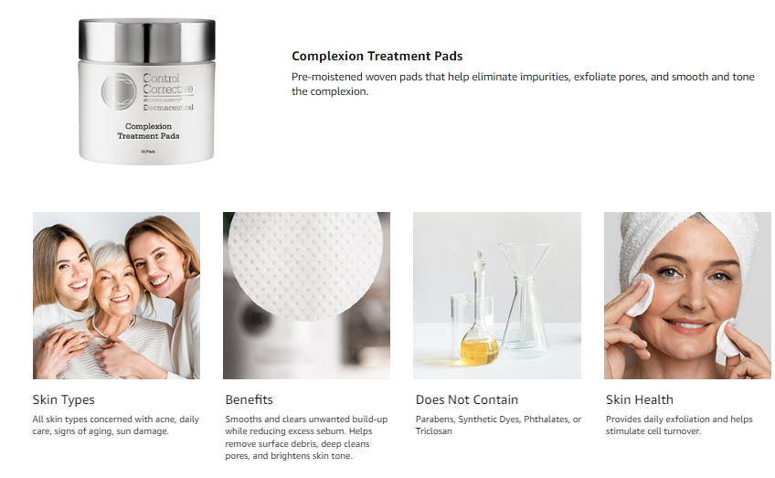 CONTROL CORRECTIVE Complexion Treatment Pads - Exfoliate Pores, Eliminate Impurities, Pre-Moistened Woven Pads Smooth & Tone Complexion, Clears Breakouts, Smooths Skin, Peel Discoloration, Brightens(6820)