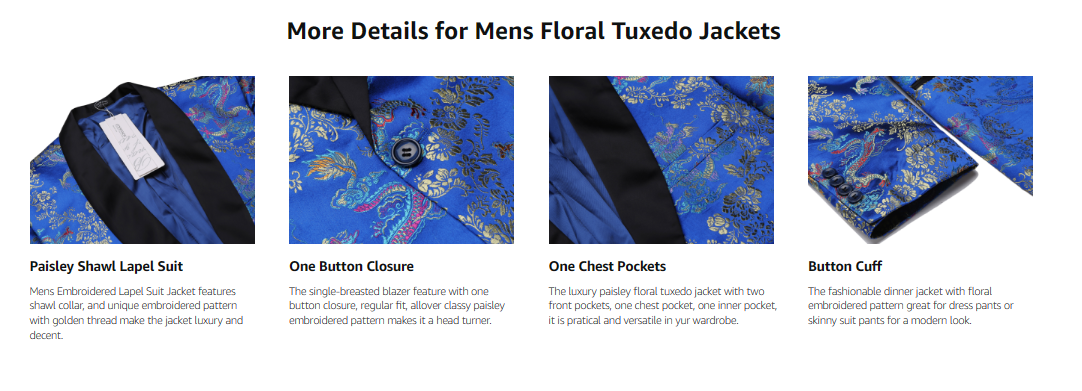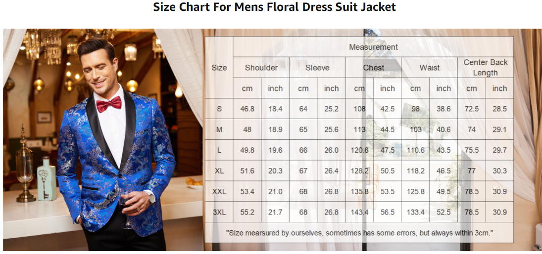 Mens One Button Party Dress Suit Blazer, Featuring shawl lapel, long sleeve. Two front pockets, one chest pocket, and one inner pocket, Four button decor on cuffs, Back center vent. Best blazer in men's wardrobe,suitable for prom, party, banquet, wedding,graduation,dating, celebration, etc.