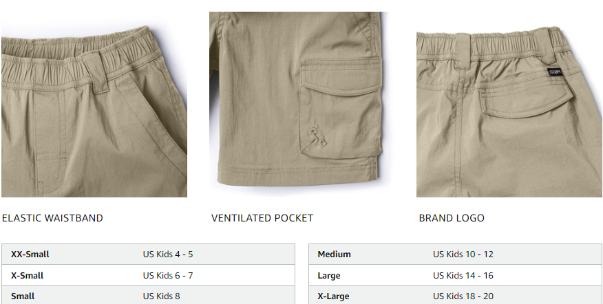 CQR Kids Youth Pull on Cargo Shorts, Outdoor Camping Hiking Shorts, Lightweight Elastic Waist Athletic Short with Pockets(5353)
