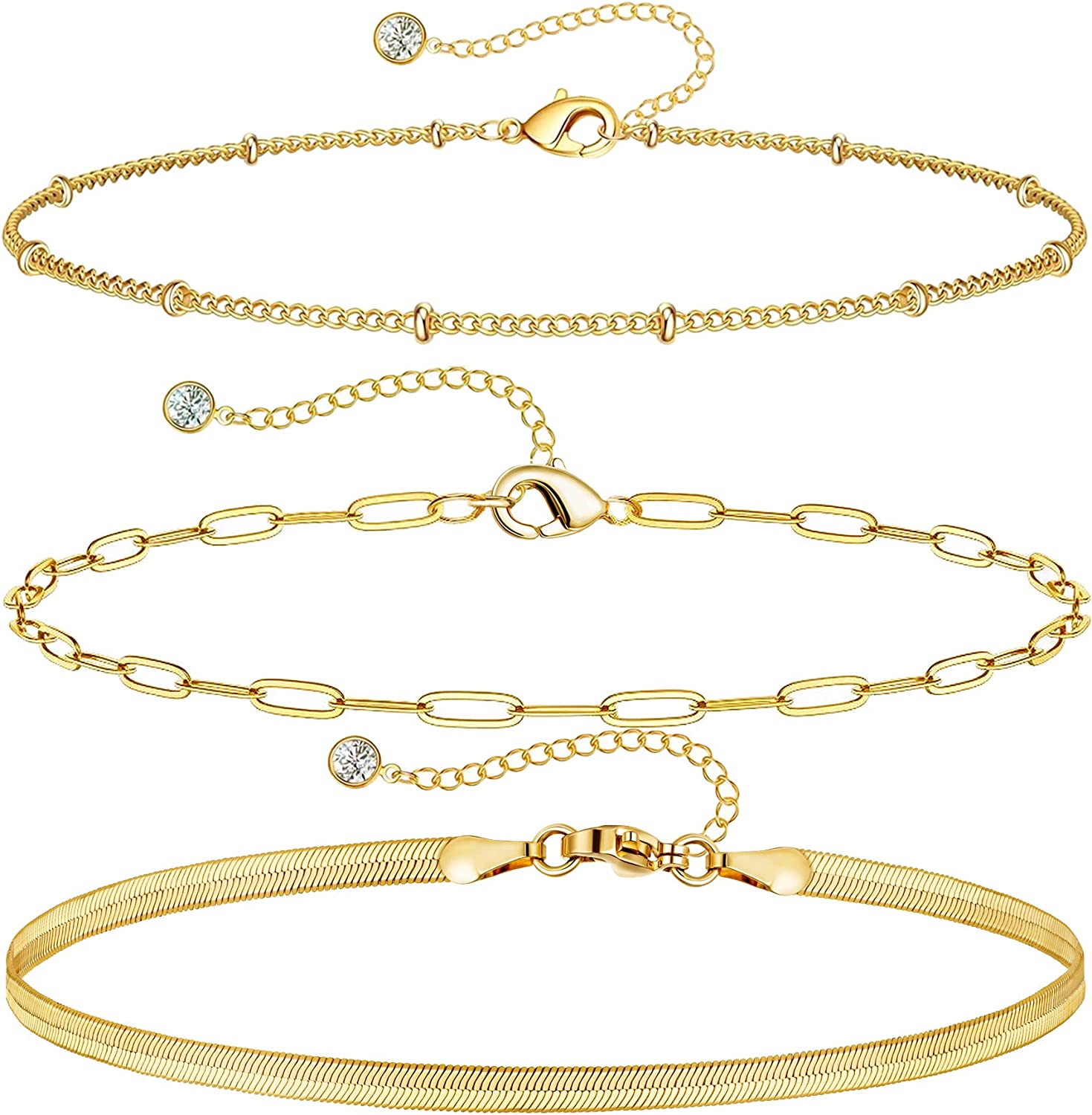 • 【3Pcs GOLD ANKLETS SET】:? Set contains: ①Thin gold cuban link anklet ② thick gold cuban link anklet ③herringbone anklet. These anklets are suitable for layering as well as being worn alone.