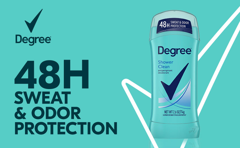 Degree is upgrading to our best formula yet. Our new and improved formulation gives you 72 hours of nonstop sweat and odor protection. You will still find all the same fragrances you know and love, but now with our new and improved long lasting protection! For a limited time, you may still receive our old 48-hour formulation while all our new 72-hour products make their way to a store near you. For the details of these changes, scroll down to see a full list of ingredients. Degree Advanced Shower Clean Antiperspirant Deodorant delivers nonstop protection, so you can face the day with confidence. This antiperspirant for women features 72-hour sweat and odor protection and the bright floral scent of rose and jasmine, blended with delicate fruit for an invigorating, clean feeling. Only Degree has MotionSense technology that moves in sync with your body. This antiperspirant deodorant spray releases a burst of subtle fragrance every time you move, for nonstop protection. Degree Advanced Shower Clean Antiperspirant Deodorant keeps you feeling fresher, drier, and more confident. This powerful antiperspirant deodorant responds when you need it most so that you don't have to worry about slowing down. Simply swipe and start moving.