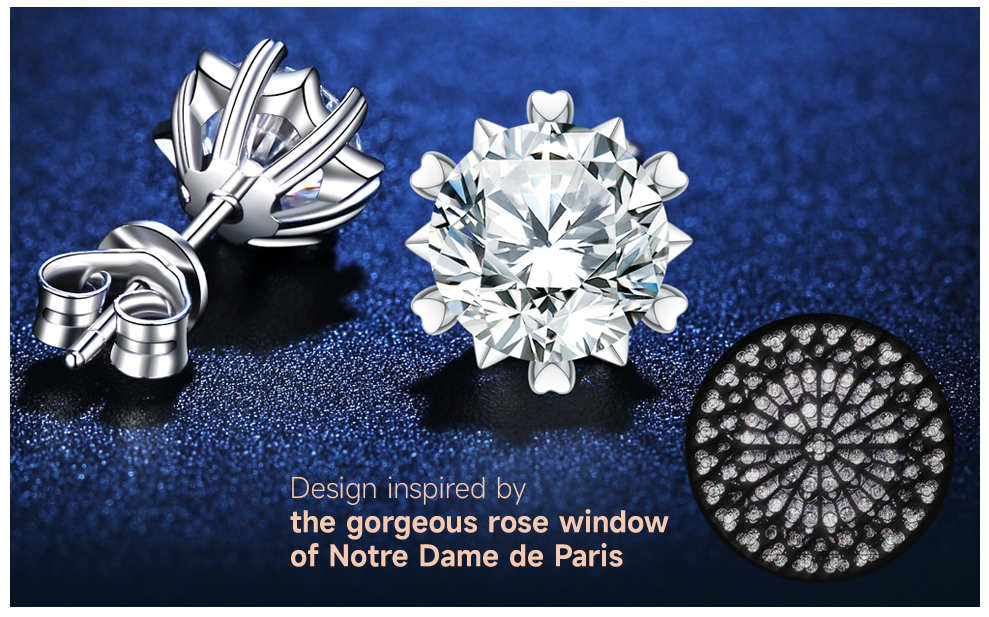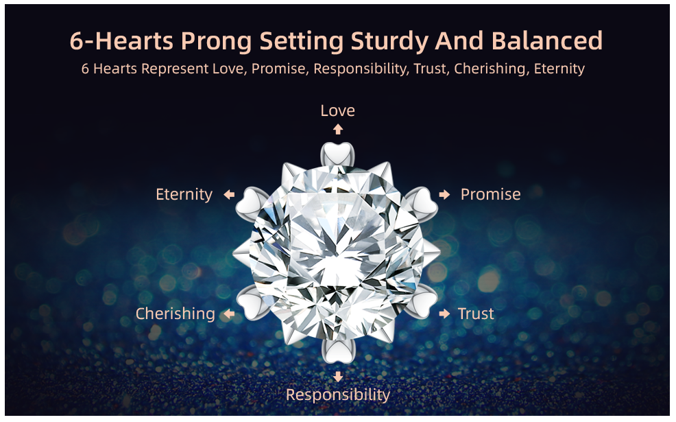 These beautiful diamond earrings are placed in a 6- Hearts prong setting for a sturdy and balanced look. 6 Hearts Represent Love, Promise, Responsibility, Trust, Cherishing, Eternity. A moissanite diamond never loses its brilliance and fire. moissanite diamond is almost indistinguishable from a natural diamond.