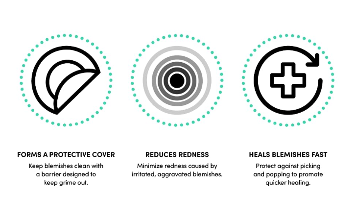 Our super-powered acne patches contain hydrocolloid that absorbs pus from whiteheads. Our pimple patches are the ultimate spot nemesis, minimizing redness caused by pesky blemishes.