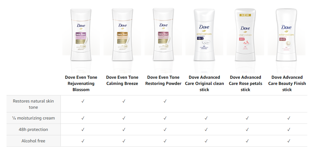 Give your underarms the care they deserve with Dove Even Tone Restoring Powder Antiperspirant Deodorant. Dove Even Tone is enriched with premium skincare ingredients, and it is specifically designed to help restore skin to its natural tone just within 3 weeks. Dove Even Tone Antiperspirant Deodorant features a unique formula, that moisturizes the skin and helps improve uneven tone. The formula of this tone-restoring stick antiperspirant is infused with Vitamin B3, and it is also enriched with our unique ¼ moisturizers, which help your delicate underarm skin recover from irritation. Dove Even Tone belongs to the only 48-hour antiperspirant range that helps restore skin to its natural tone, and it is cruelty-free certified by PETA. It’s pleasantly scented with a modern powder scent and a sophisticated floral that will leave you feeling fresh and smelling great all day. Dove Even Tone women’s antiperspirant deodorant is our best care for soft and even toned underarms, and it leaves you confident to reveal underarms without a second thought. Now there’s nothing standing between you and confidence that lasts all day. For the best results and a long-lasting fragrance, use on clean, dry underarms. Twist the applicator to release the smooth antiperspirant deodorant stick and glide on in even, light strokes.