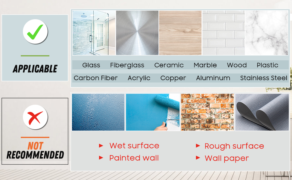 Note3: Please keep the mounting surface dry, clean and free of oil when mounting to creat a instant and permanent bond . Applying the tape vetically on the items can creat stronger bonds.