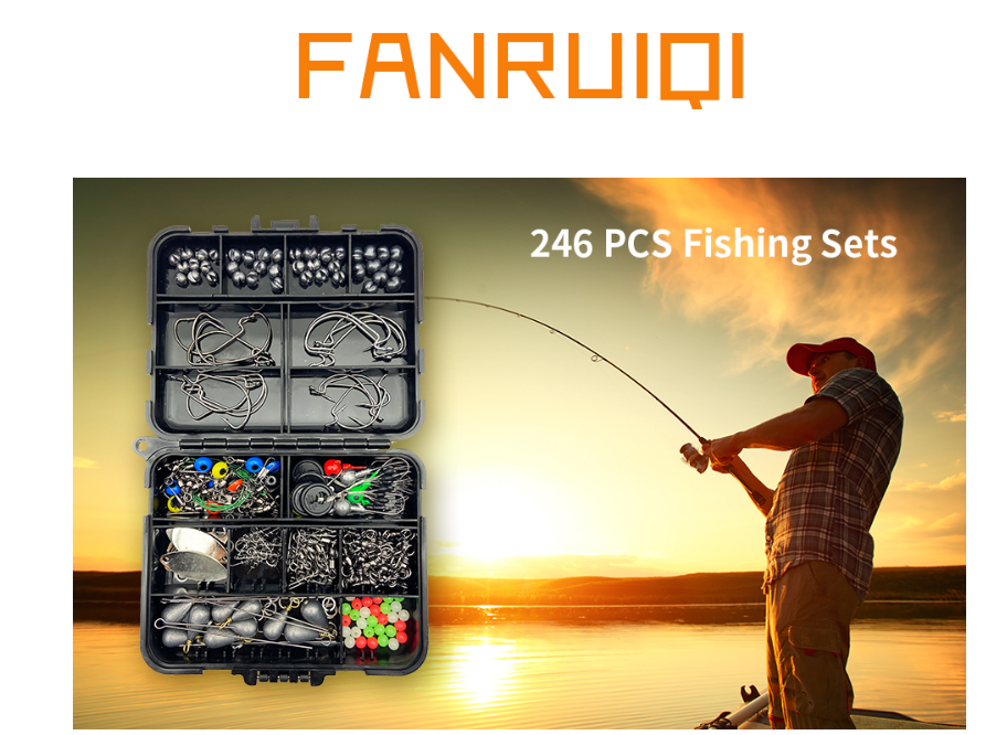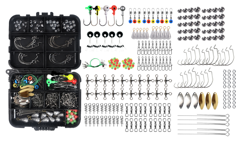 Fishing tool box with hooks and other accessories, 246 pieces in total.