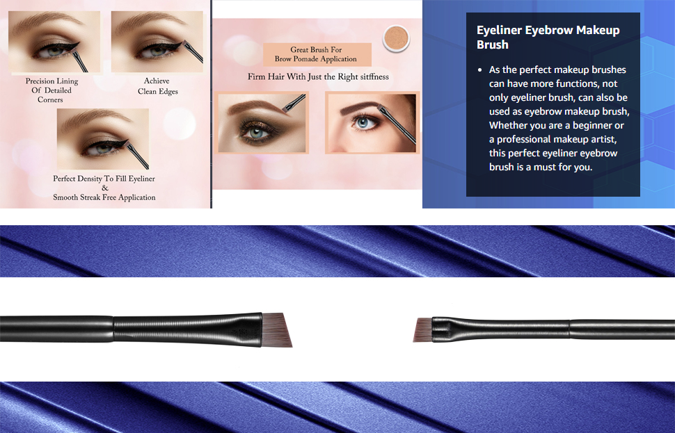Eyeliner Brush Features Unique Angled Brush Hair Tip Made With Premium Hair Excellent Angle For Clean Sharp Eyeliner Edges Easy To Use Designed with precision in mind for flawless cat eyes, expert winged tips and beautiful glitter liner. Define your eyeliner shapes with our unique eyeliner brush, with easy hold handles these brushes with help you create stunning eyeliner.