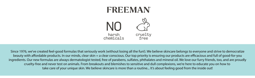 Looking to do a spa night with you and your friends or wanting to restock your favorite skincare essentials? This pack of pore minimizing, and oil absorbing face masks include a variety of skin benefits and scents that will keep your skin looking radiant and glowing! Regulate your self care routine by applying these cream, clay, and gel Freeman masks that are easy to apply and remove. For over 40 years, Freeman Beauty has been on a mission to make nature inspired, fun, high-performing specialty beauty products accessible to the younger beauty-involved customer. With a portfolio of six beloved brands, we offer a wide range of facial masks, dry shampoo, specialty bath & body, and foot care products that provide a spa-like experience in the comfort of your own home. Freeman Beauty was launched in 1976 with a vision to provide nature inspired hair care, facial masks, and bath & body essentials. Since then, Freeman Beauty has become the leader and recognized expert in facial masks with a variety of innovative, on-trend, and award winning products! Our brand portfolio includes Freeman Feeling Beautiful facial masks, Freeman Beauty Infusion serum-infused facial masks, Freeman Feeling Legendary facial masks for men, Freeman Bare Foot pampering foot care products, Psssst! the TRUE Original Dry Shampoo, and c.Booth bath & body care products.