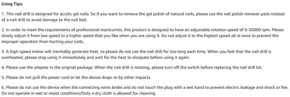 Low Heat & Low Noise & Low Vibration: Fuegobird manicure pedicure machine features a powerful motor with efficient heat dissipation, ensuring low heat, low noise, and low vibration during use. Please note that this nail drill should be rested after 20 minutes of continuous use for optimal performance.