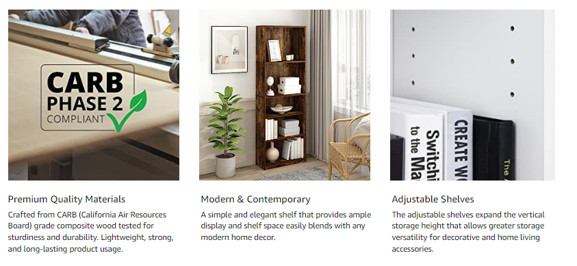 FURINNO Jaya Series 5 tier Shelf bookcase is a great way for storage and display at home and in the office. Shelf heights are adjustable to create your own storage and display spaces for different sizes items. Easy assembly, light weight, yet looks refreshing and space saving. It comes in 3 colors to blend in with your existing home decor. The materials comply with particle board for furniture. There is no foul smell of chemicals, durable and it is the most stable medium density composite wood used to make RTA furniture. All the products are produced and assembled 100-percent in Malaysia. Care instructions: wipe clean with clean damped cloth. Avoid using harsh chemicals. Pictures are for illustration purpose. All decor items are not included in this offer.