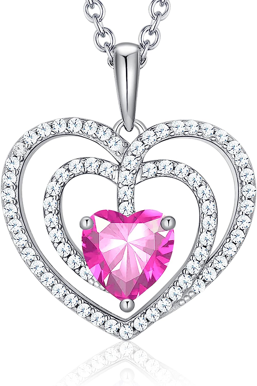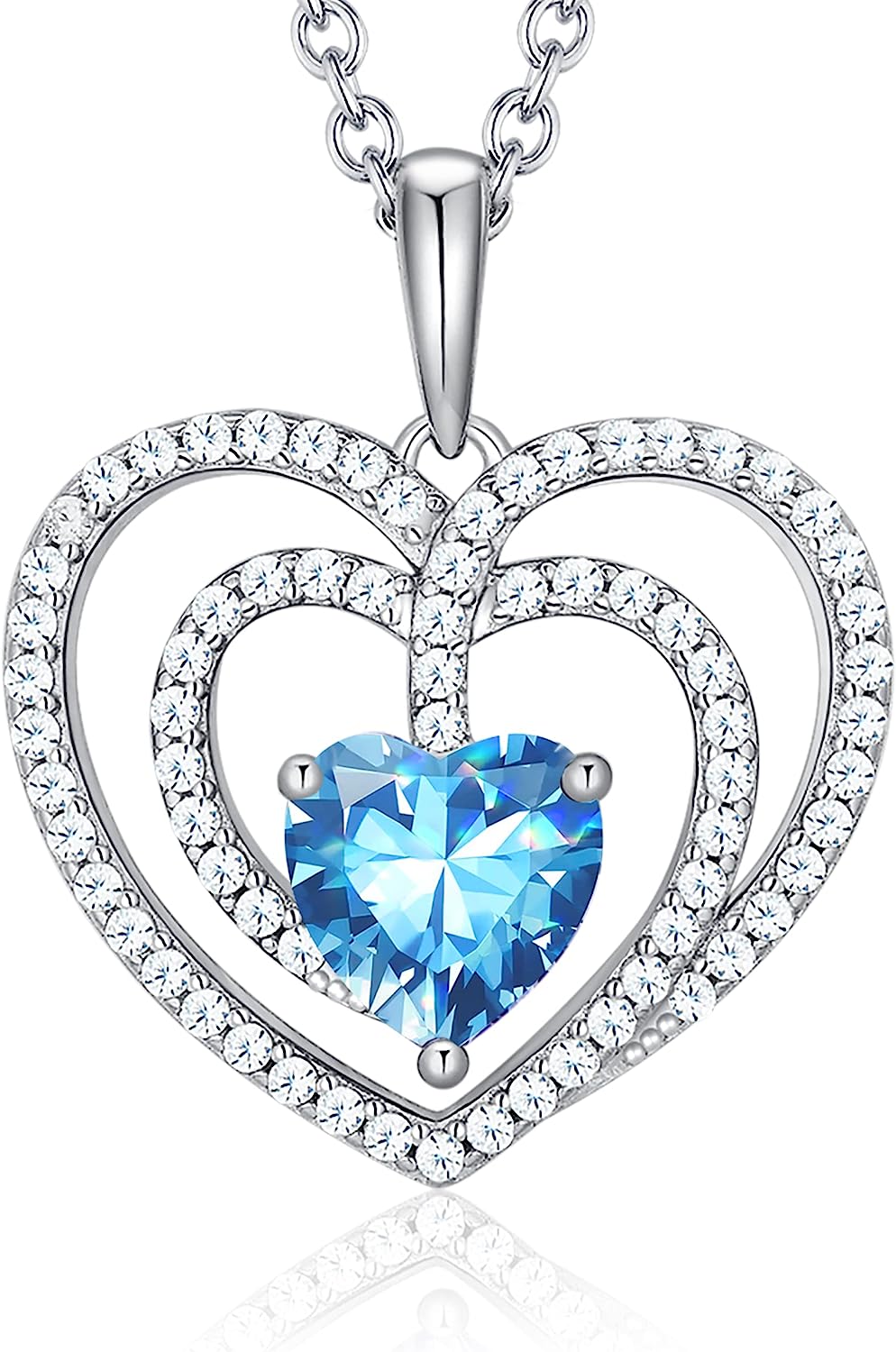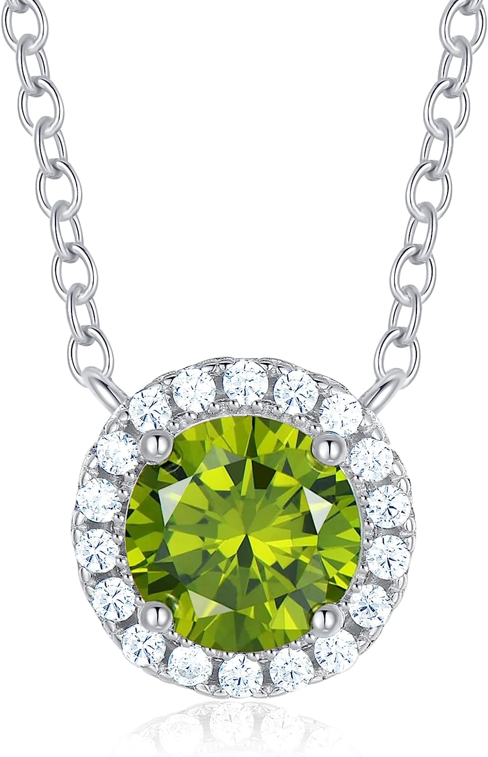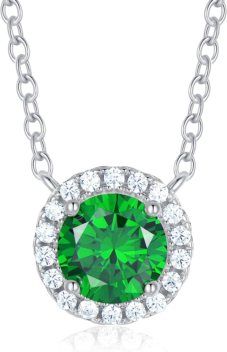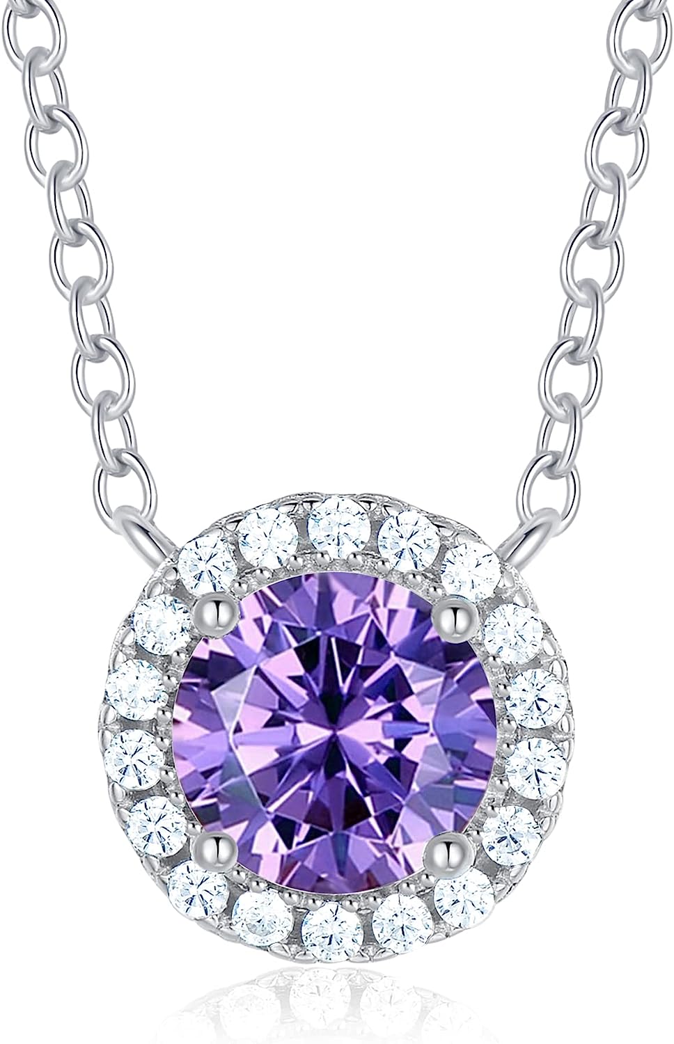 The pendant of our 925 sterling silver necklace inlayed with round solitaire birthstone sparkles in the halo of 18pcs AAAAA+ Cubic Zirconia.