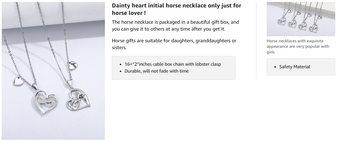• AFTER SALES SERVICE: Please let us know if there is any quality problem of the horse necklace, we will reply you at the first time. Wish you have a nice shopping experience here.