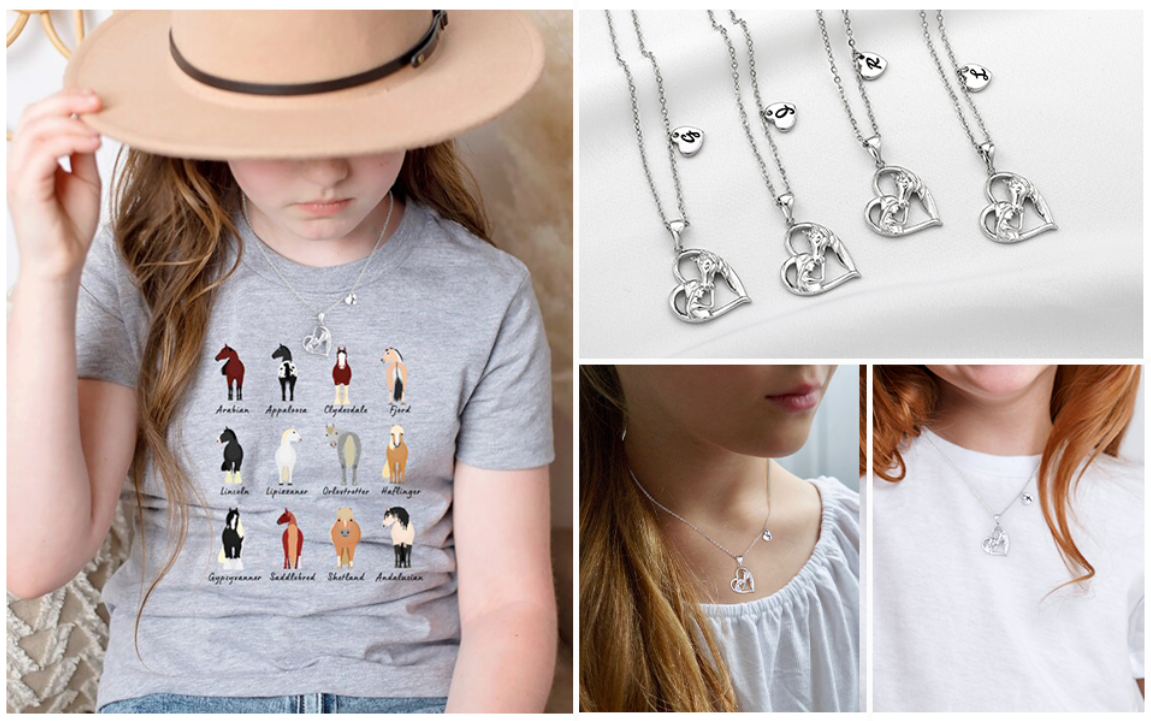 As a girl's jewelry, is this horse necklace very cute and cute? This horse necklace with initials is very memorable for horse lovers.