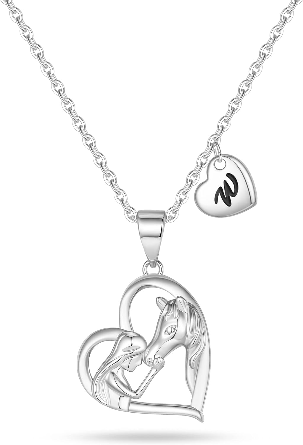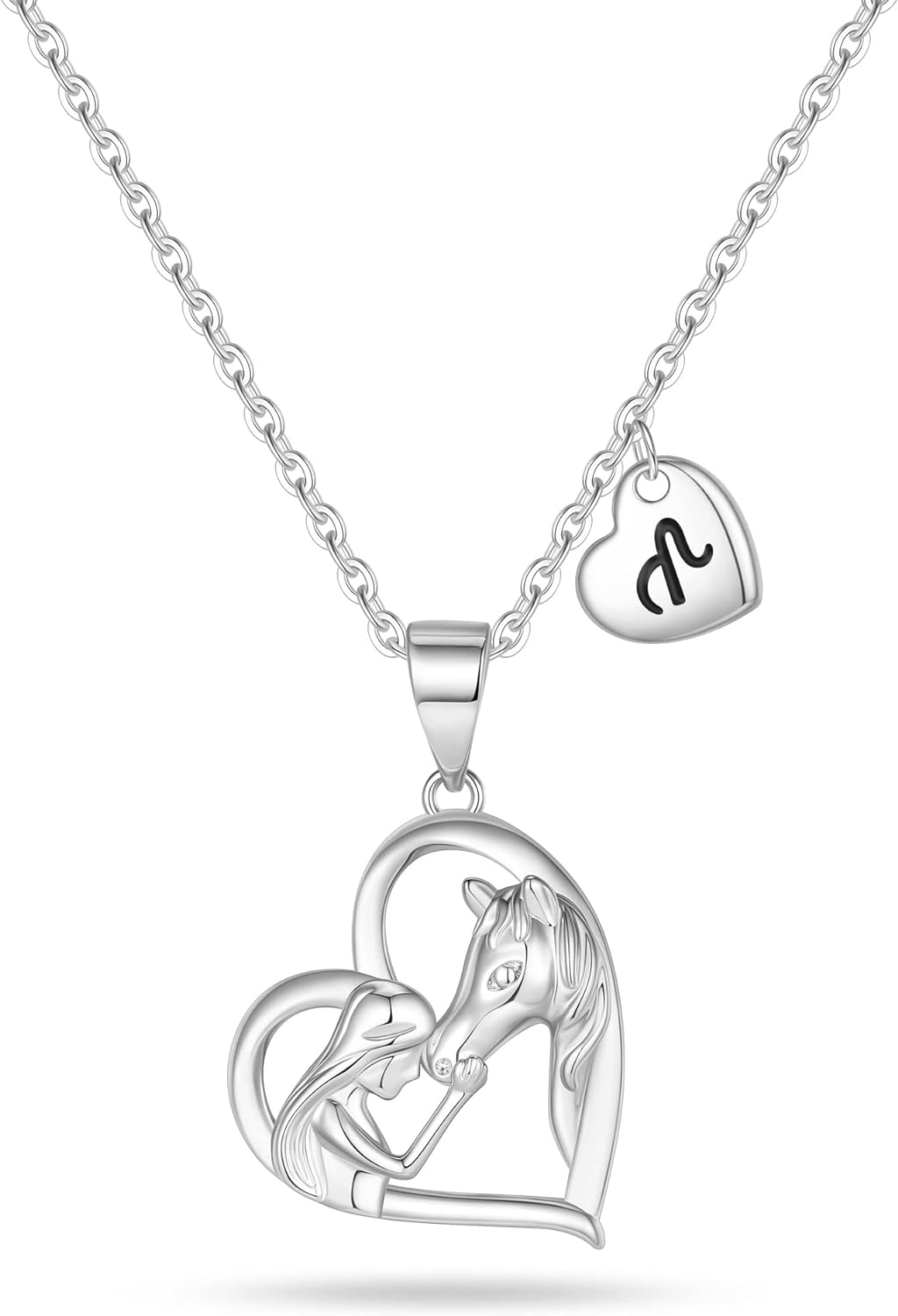 Horse Necklace Horse Gifts for Girls, Heart Pendant Initial A Necklace Horse Necklaces for Girls Women Little Girls Jewelry Horse Necklace Jewelry Kids Necklace for Girls Initial Necklace for Girls(3105)