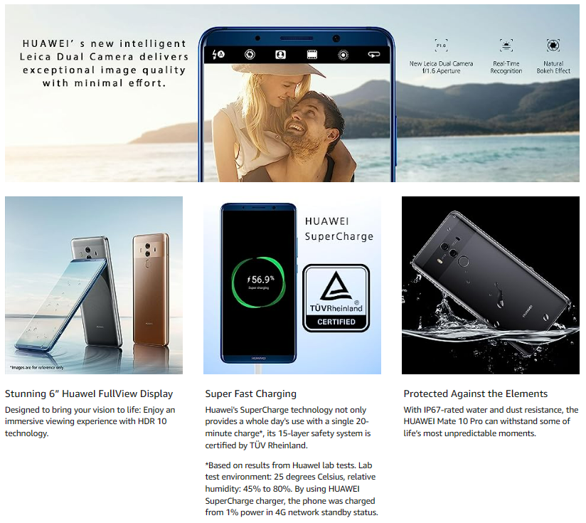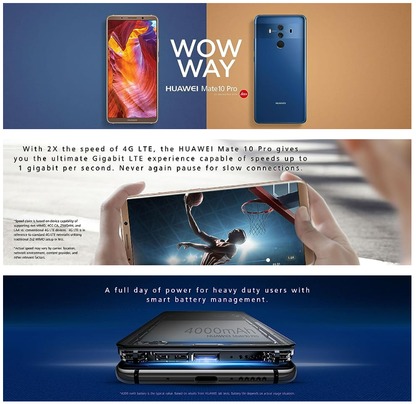 For the ultimate in luxury, choose the mate 10 Pro Porsche design limited Edition with 6GB of RAM and 256GB of storage. The Huawei mate 10 Pro features a strong and Robust glass casing both front and back, for a uniquely elegant design. An innovative technique is used to heat the rear glass to nearly 1300 degree before shaping to deliver ultimate style. With the new LEICA Dual lens with F/1.6 aperture, you can easily take beautiful depth of field pictures, crystal clear low-light photographs and blur-free shots of objects on the move. The 20MP Monochrome sensor and 12MP RGB sensor with optical image stabilization captures more light to perform at an expert standard. Powered by Ai to ‘Learn’ from our data cache of portrait images, the Huawei mate 10 Pro can differentiate between 13 different subjects like people, pets, food, Flowers, landscape, etc. To automatically adjust Settings for the perfect shot every time. It can also seamlessly evoke a professional Bokeh effect by shifting the focal point onto the subject of the Photograph, for picture-perfect portraits and selfies. Combine these professional quality camera features with its 4000 mAh battery for extra-long life even for power-users.