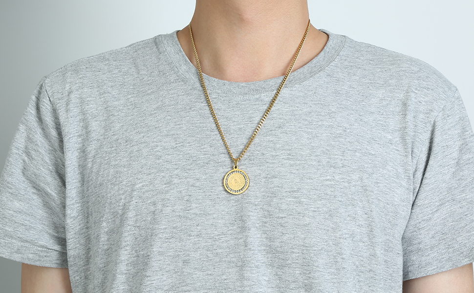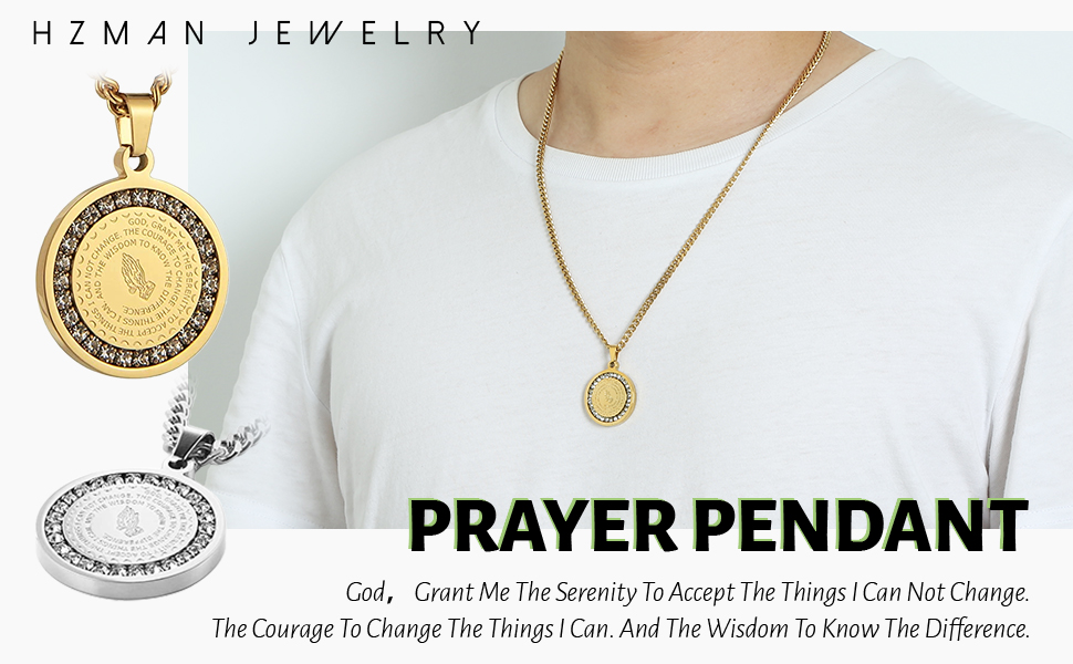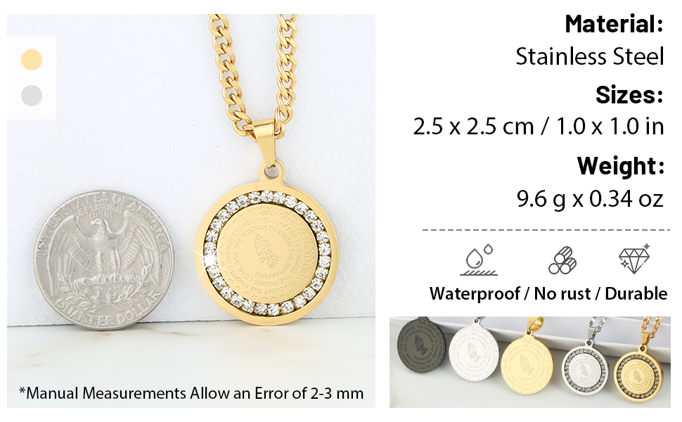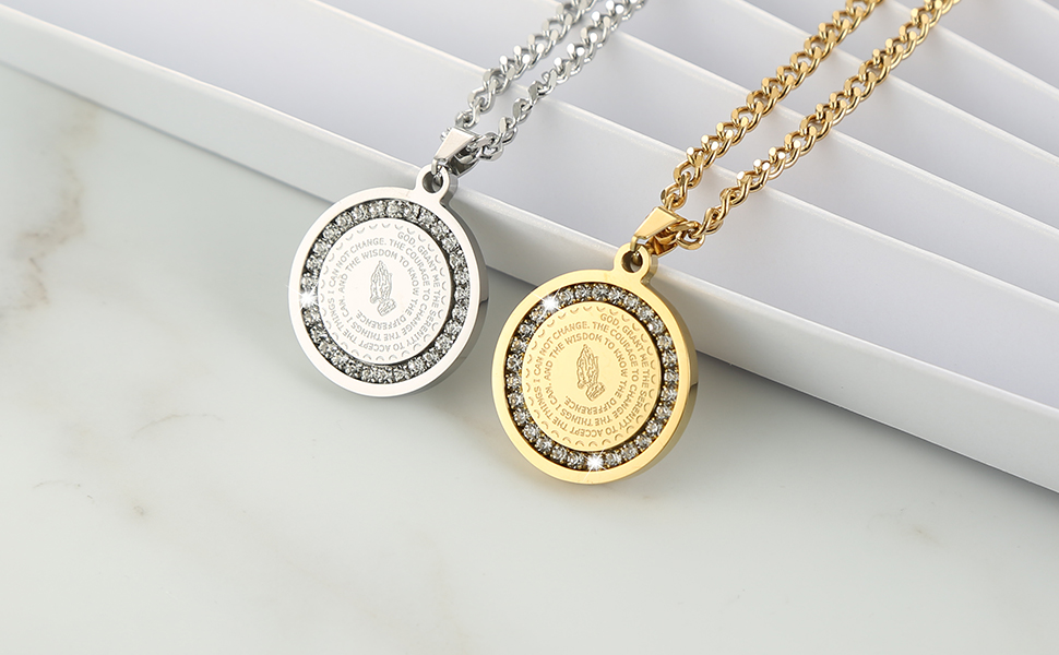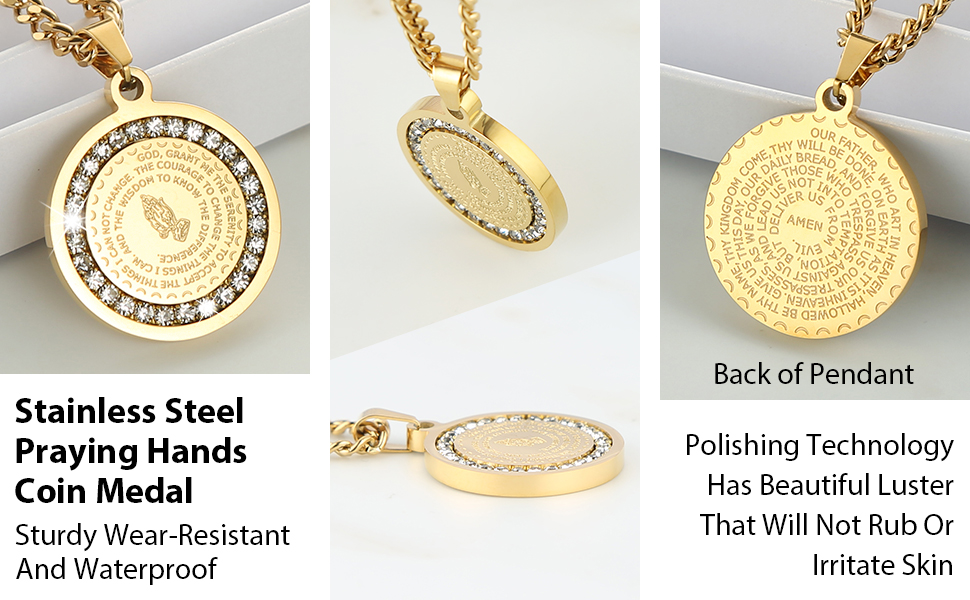 HZMAN Bible Verse Prayer Necklace Christian Jewelry Gold Stainless Steel Praying Hands Coin Medal Pendant(534)