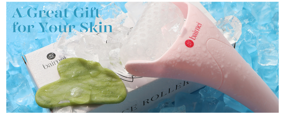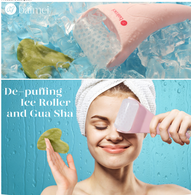 Ice Roller for Face and Gua Sha Facial Tools, BAIMEI Ice Face Roller Reduces Puffiness Migraine Pain Relief-Pink(6874)