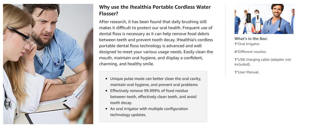 【Worry-Free Money Back Guarantee】IHealthia Cordless Water Flosser offers a full 30-day money-back without much argument. If you have any questions or dissatisfaction, please feel free to contact us and we will fix it.