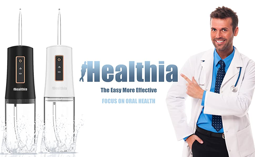 IHealthia-Water-Flosser-Teeth-Cleaner, Rechargeable - Waterproof, Portable Cordless Dental Oral Irrigator, Water flossers for Teeth, 3 Modes 4 Nozzles, for Home&Travel(4718)