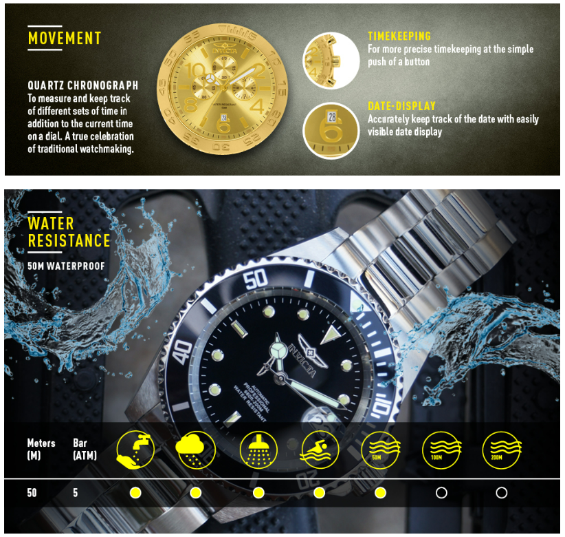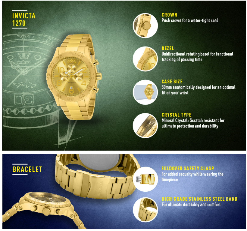 With a bold design, this Invicta chronograph has a poised and calm ambience that’s sure to have you looking twice. Sporting an intricate design and subdial system, this bold invicta chronograph is precise on time and measurement.