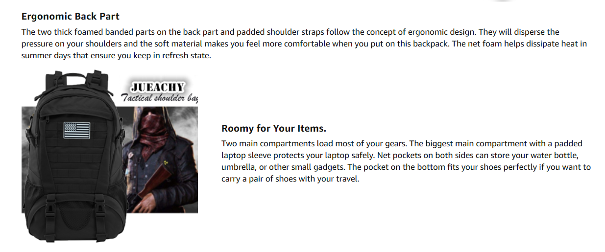 • ✅ STABLE STRAPS: The chest and waist straps with fasten buckles make it easy for you to buckle the straps in seconds to stable the trekking backpack. The buckle strap on both sides and the 2 compression fasten buckle straps on the bottom enhance the army backpack’s stability when moving.