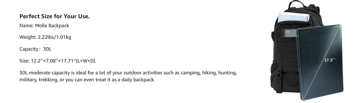 • ✅ MOLLE DESIGN & FOAMED PROTECTED: Molle system design provides portability for you to combine with knives, pockets, hooks or other small gadgets. This molle hiking daypack comes with a USA Flag Patch stick on the front can make you stand out when in the forest. The foamed back part and padded shoulder straps make you feel comfortable even it loads a lot.