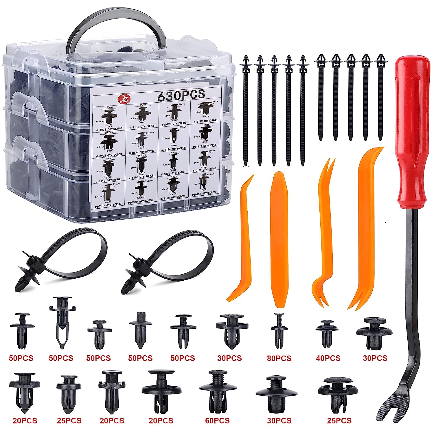 Car Screw Clips Includes 6 Most Popular Sizes from 6.3(1/4"),8(5/16"),9(23/64") to 10 (25/64").