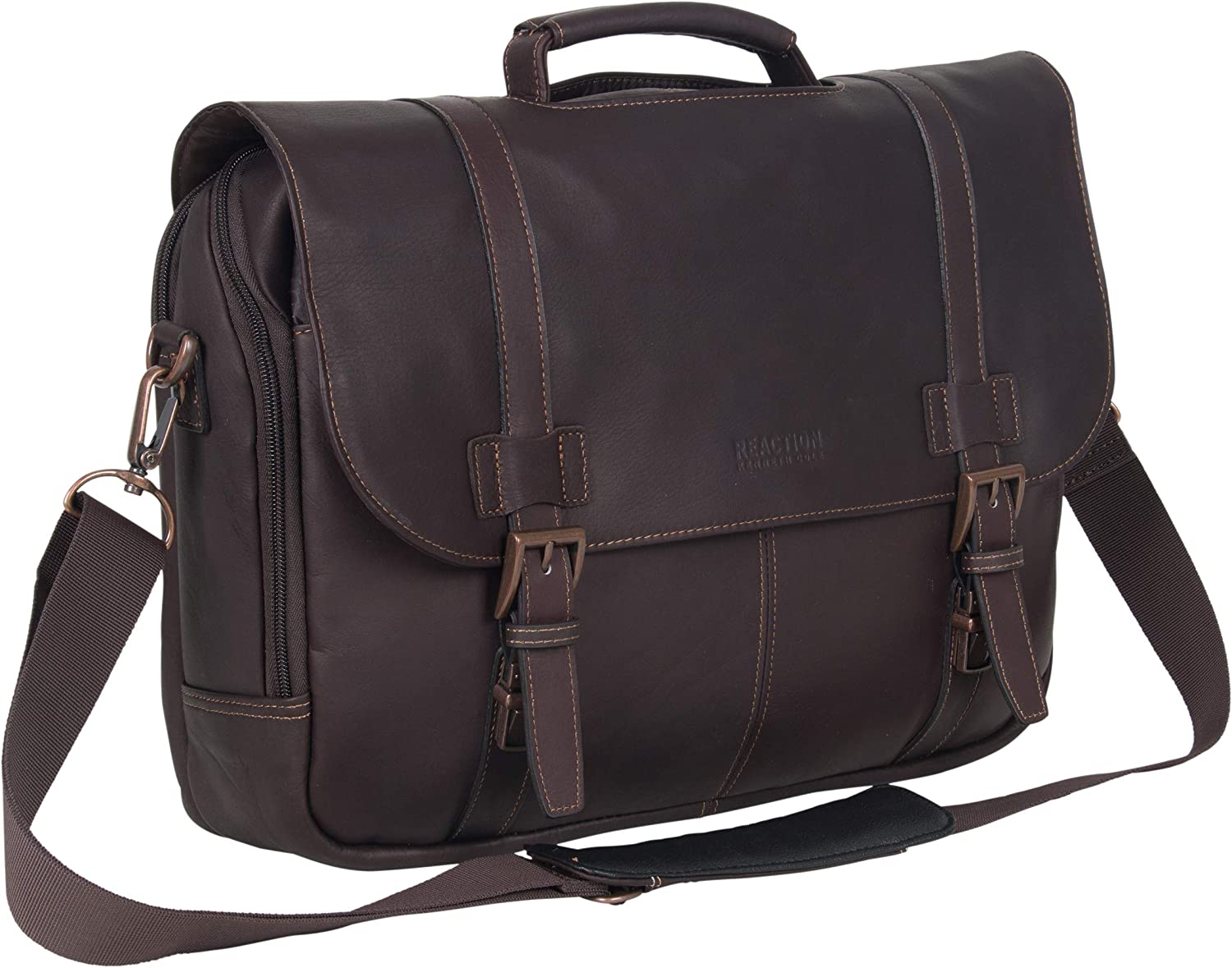 Sleek yet traditional, the Colombian leather "show business" Genuine full-grain cowhide Colombian leather 15. 6-Inch laptop business portfolio from Kenneth Cole REACTION will have you traveling in style. Packed with features, including a spacious, fully lined interior, padded laptop pocket that holds most laptops with up to a 15. 6-Inch screen, an interior open top accessory pocket, and a rear exterior open top pocket for easy access to frequently needed items. This business savvy leather business case is made of a luxurious cowhide Colombian leather that is very durable and ages beautifully, creating a bag that is uniquely your own. Interior also features a fully lined tear-resistant lining to stand up to daily use. Includes an adjustable, padded shoulder strap that extends 52 inches. Exterior Features buckle looking closures with a convenient secure tuck lock. Front pocket organizer holds a variety of business essentials including a cellular phone. Front compartment features a padded computer pocket, tablet pocket, and an open top accessory pocket. Overall size: 16. 0” L x 12. 5” H x 4. 0” D. Computer compartment Dimensions: 14. 375” L x 10. 625” H x 1. 5” D. Weight: 3. 6 lbs. Please note that the leather used in crafting this bag is a natural cowhide that is minimally treated. As a result each bag will be slightly different and have Its own unique characteristics. You will notice imperfections and color Variations in the leather. This is made of 100% Genuine full grain Colombian leather; no substitute leathers were used and no split leathers were used. Backed by a manufacturer lifetime limited . This is the perfect feature rich, multi-pocket leather business portfolio for professionals and travelers whom value both style and function.