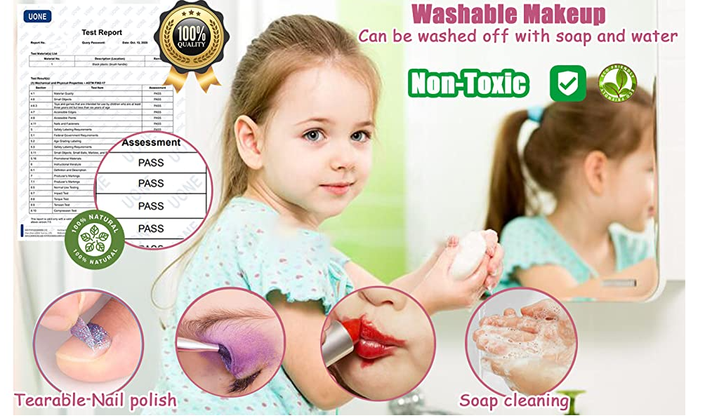 Real children makeup kit is made of safe materials and can be easily washed off with soap and water without worrying about cosmetic residues.
