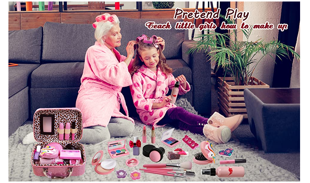 Real washable make up set designed for little girls, toddlers to dress up with, put a makeup on kids for Christmas, Halloween, Children's Day, costume party, birthday party and so on.