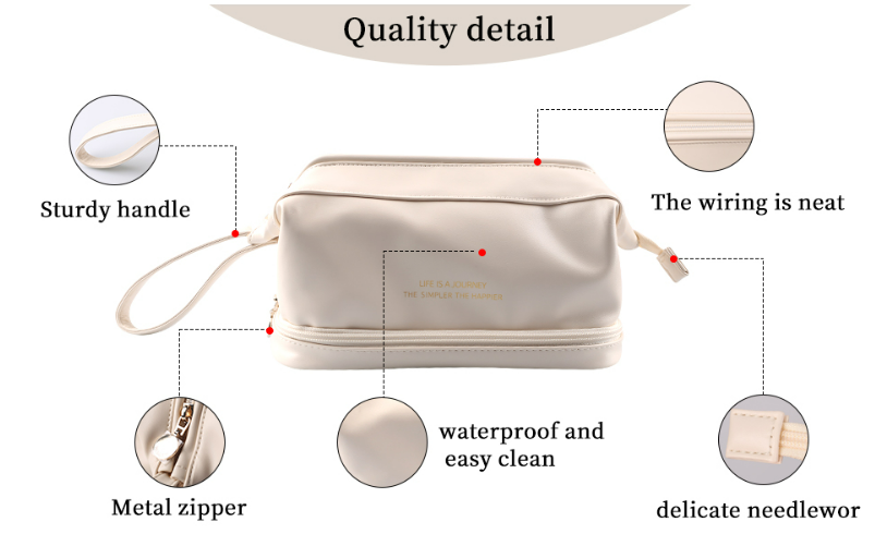 ♥HIGH QUALITY --- The fabric is made of premium leather, soft, comfortable, lightweight,tough and smooth.It is waterproof, so you don’t have to worry about water splashing on the cosmetic bag when washing your hands.