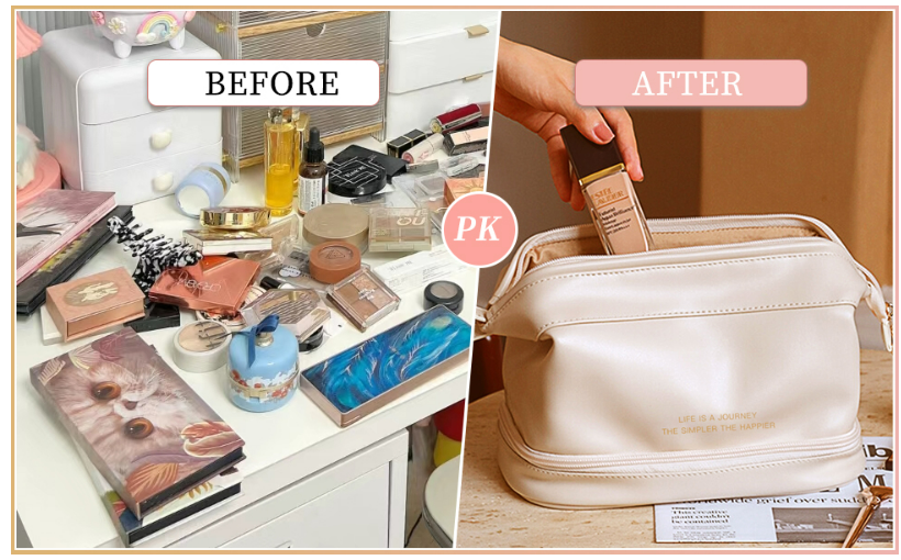 ♥Unique design---The product is divided into upper and lower storage areas, the bottom is a makeup partition, eye shadow, makeup brushes are placed separately, clean and tidy. The upper layer has a large opening for easy access, and there are two small layers where you can put lipstick, earrings, etc., without mixing.