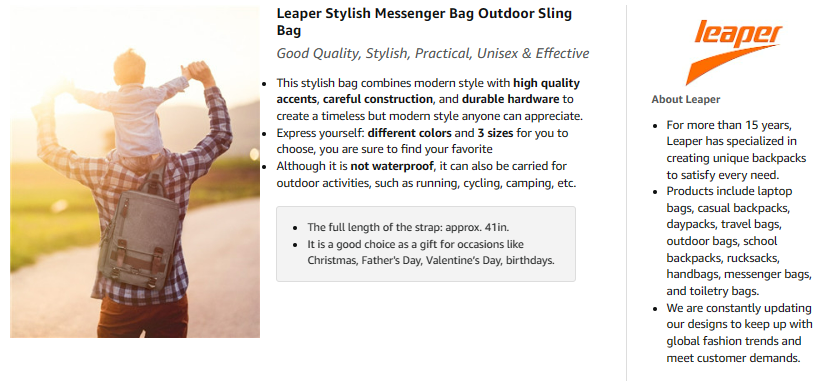 | Included Components | Sling Bag |