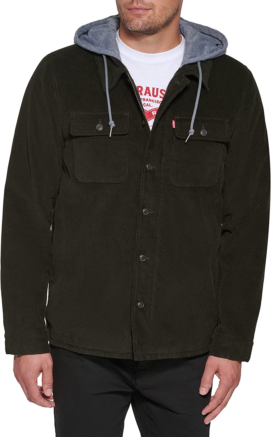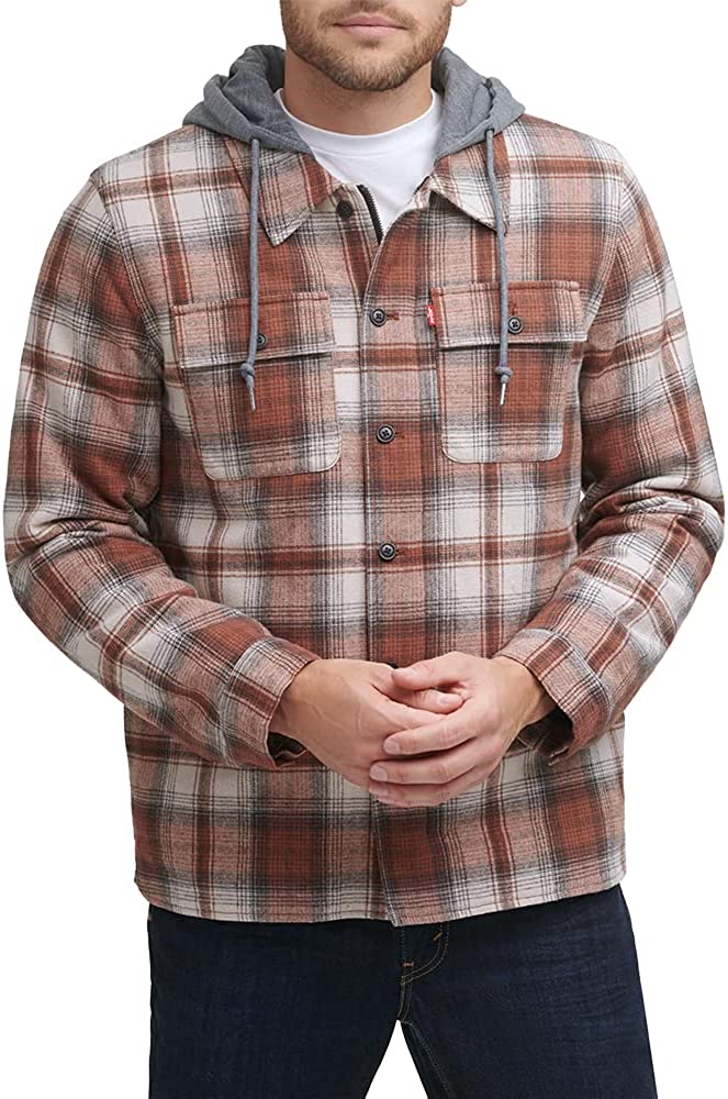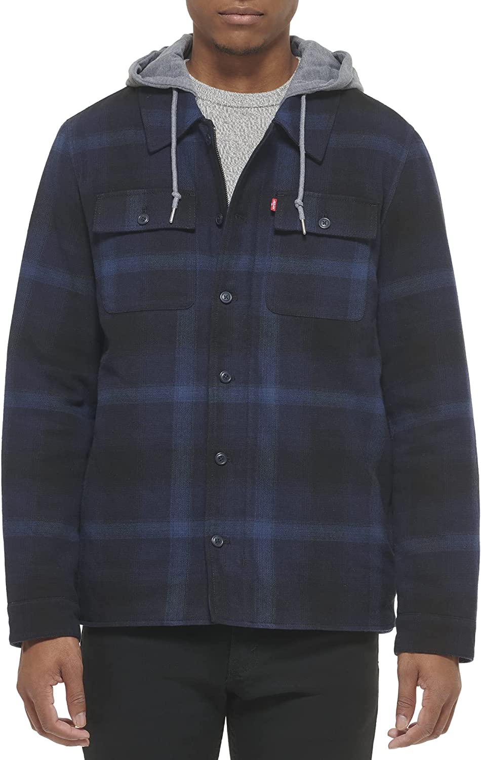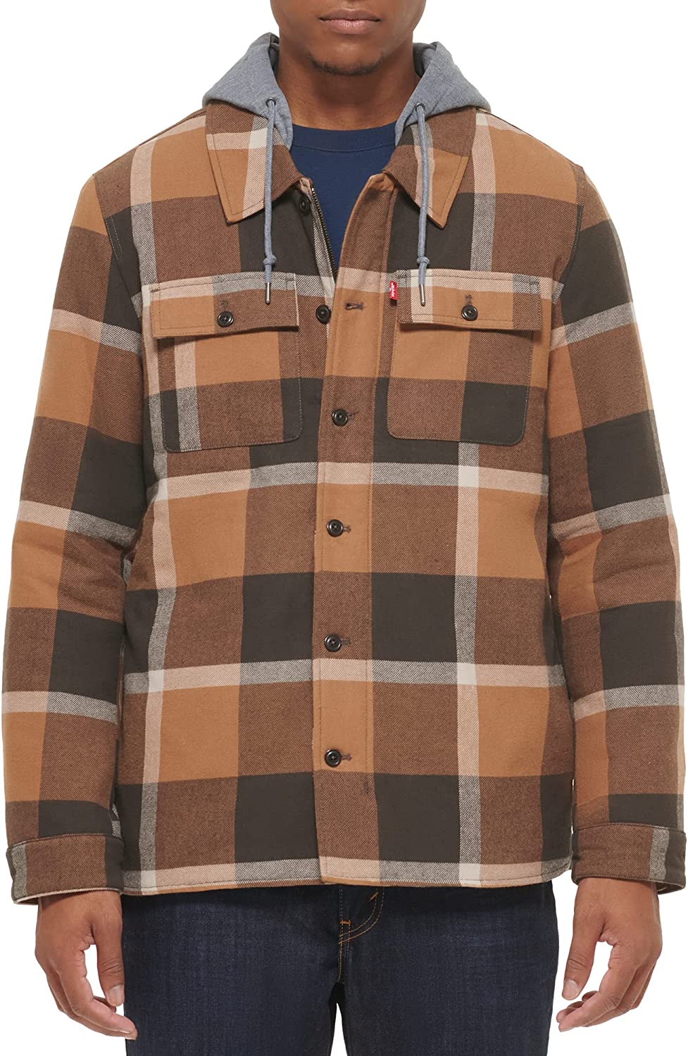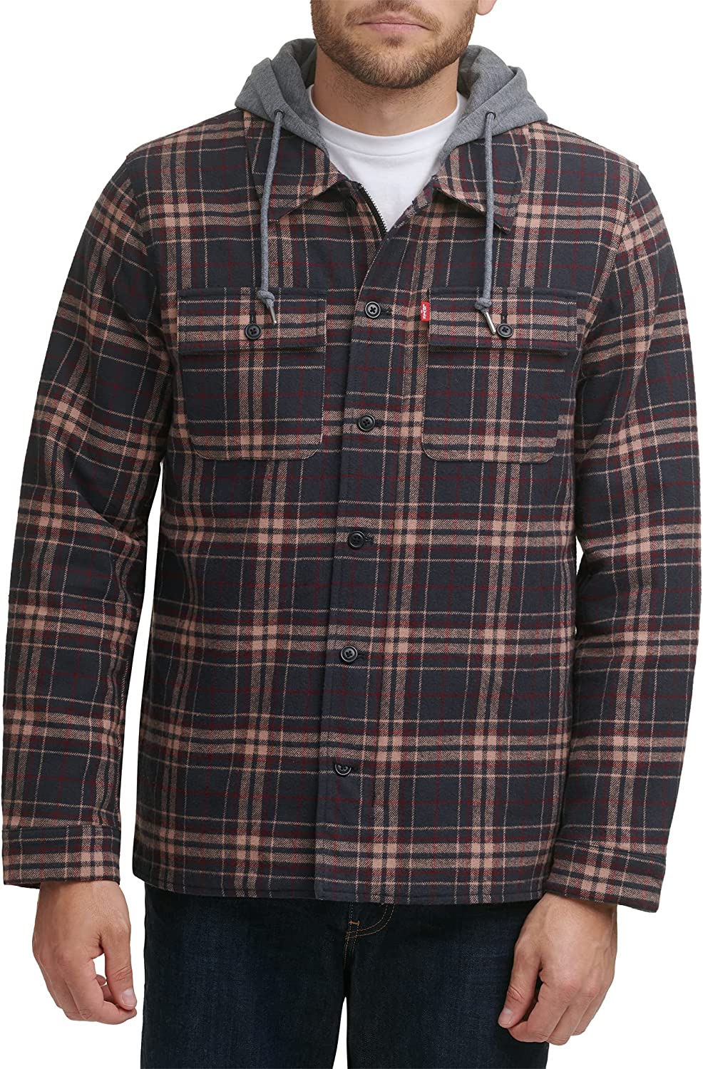 Levi's Men's Cotton Plaid Shirt Jacket with Soft Faux Fur Lining and Jersey Hood(218)